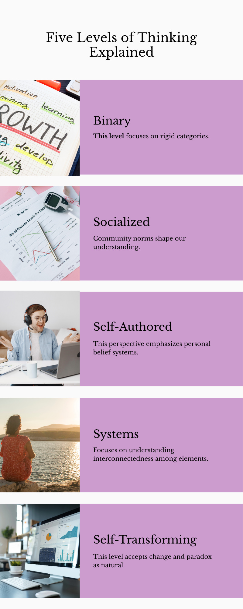 You can exist at different levels depending on the situation. For instance, someone may use self-authored thinking in their career but revert to binary thinking in family disputes.